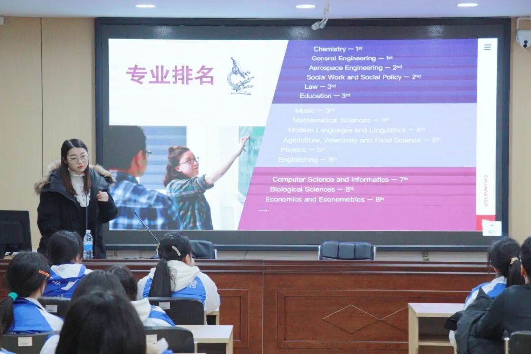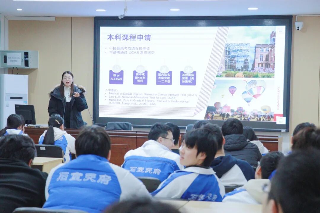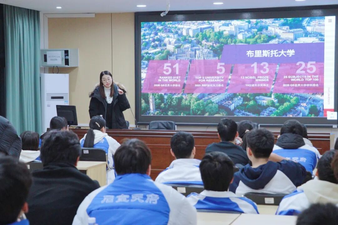 1月13日晚,石室天府中学会议室内座无虚席,布里斯托大学中国办公室的Emily WANG老师站在台前,她身后屏幕上的几行数字,吸引了所有目光: