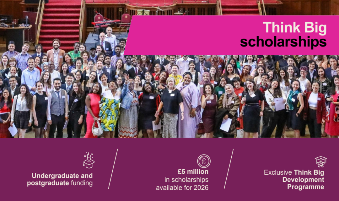 大学为2026年入学的学生设立了“Think Big”奖学金计划,提供总额500万英镑的奖学金,并配有专属发展项目支持。